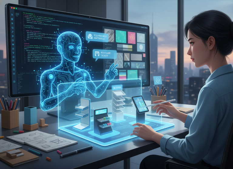 Sử dụng chat bot AI của công ty để lên ý tưởng thiết kế mẫu quầy kệ, POSM